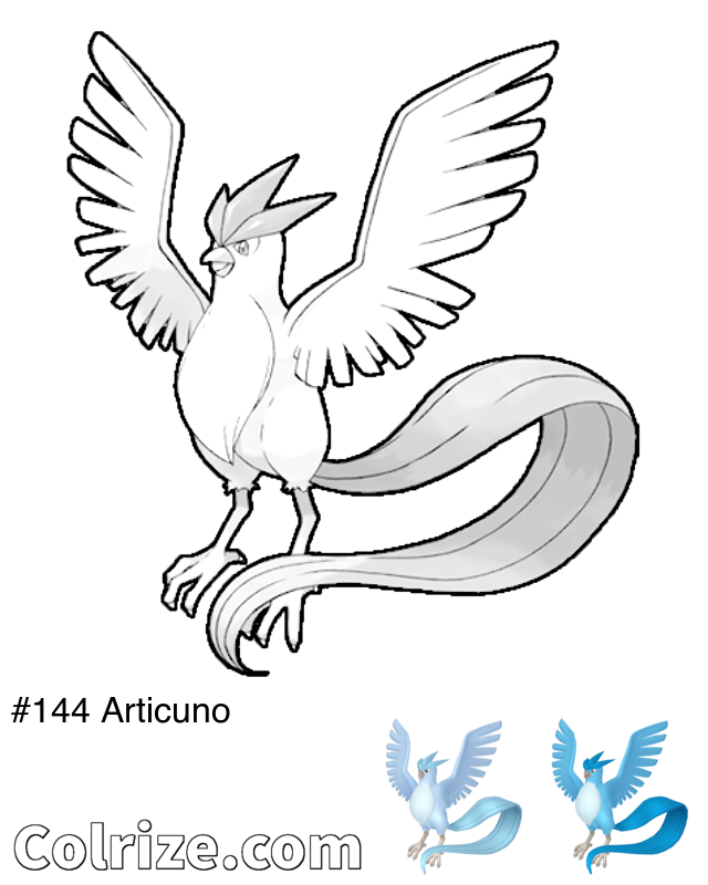 Articuno pokemon coloring page with color references! Also has Shiny Articuno