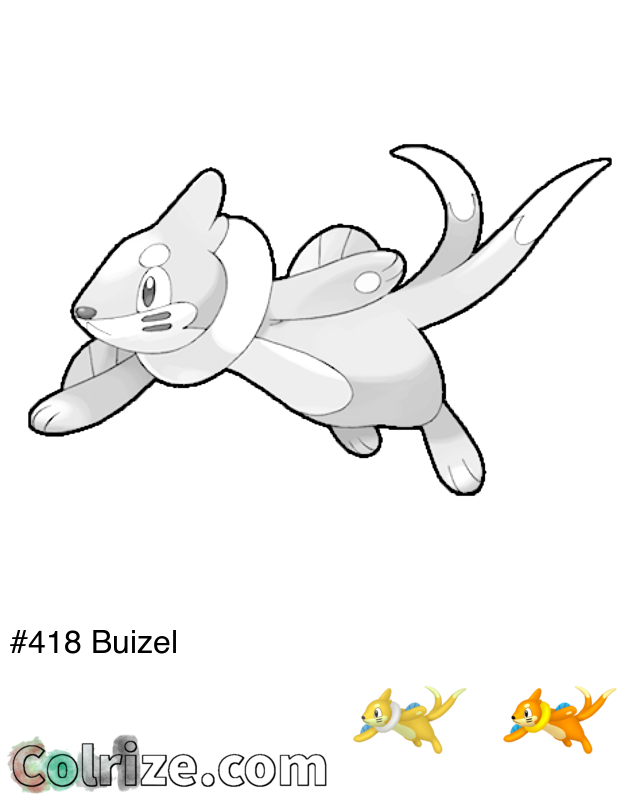 Buizel pokemon coloring page with color references! Also has Shiny Buizel and evolution chain coloring pages