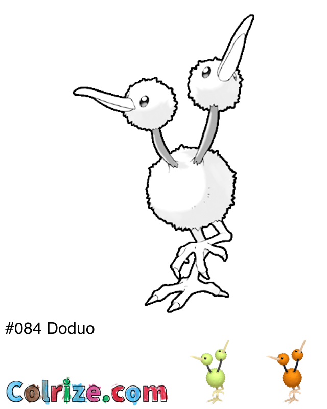 Doduo pokemon coloring page with color references! Also has Shiny Doduo and evolution chain coloring pages