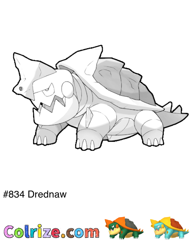 Drednaw pokemon coloring page with color references! Also has Shiny Drednaw and evolution chain coloring pages