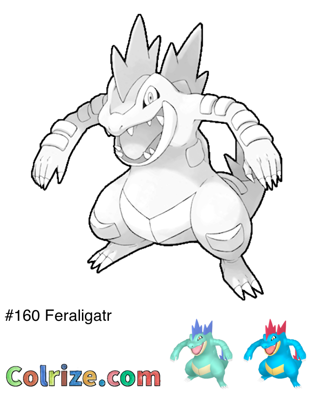 Feraligatr pokemon coloring page with color references! Also has Shiny Feraligatr and evolution chain coloring pages
