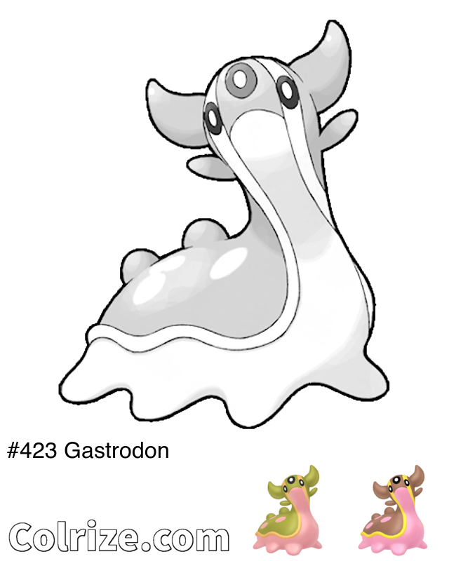 Gastrodon pokemon coloring page with color references! Also has Shiny Gastrodon and evolution chain coloring pages