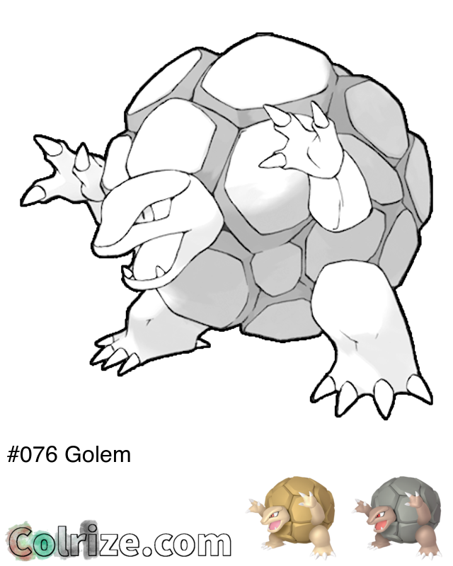 Golem pokemon coloring page with color references! Also has Shiny Golem and evolution chain coloring pages