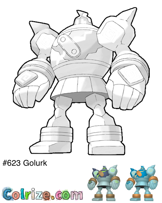 Golurk pokemon coloring page with color references! Also has Shiny Golurk and evolution chain coloring pages