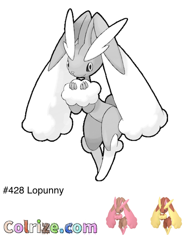 Lopunny pokemon coloring page with color references! Also has Shiny Lopunny and evolution chain coloring pages