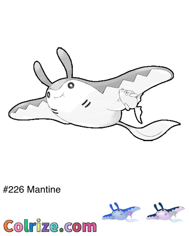 Mantine pokemon coloring page with color references! Also has Shiny Mantine and evolution chain coloring pages