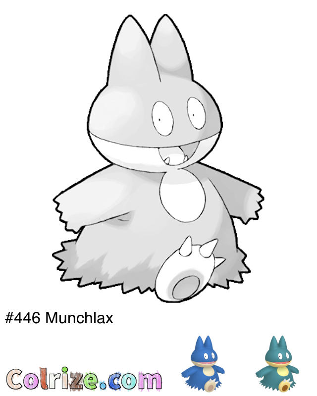 Munchlax pokemon coloring page with color references! Also has Shiny Munchlax and evolution chain coloring pages