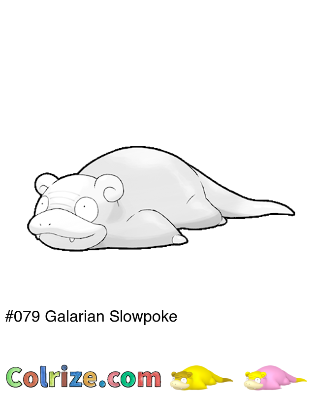 Galarian Slowpoke pokemon coloring page with color references! Also has Shiny Galarian Slowpoke and evolution chain coloring pages