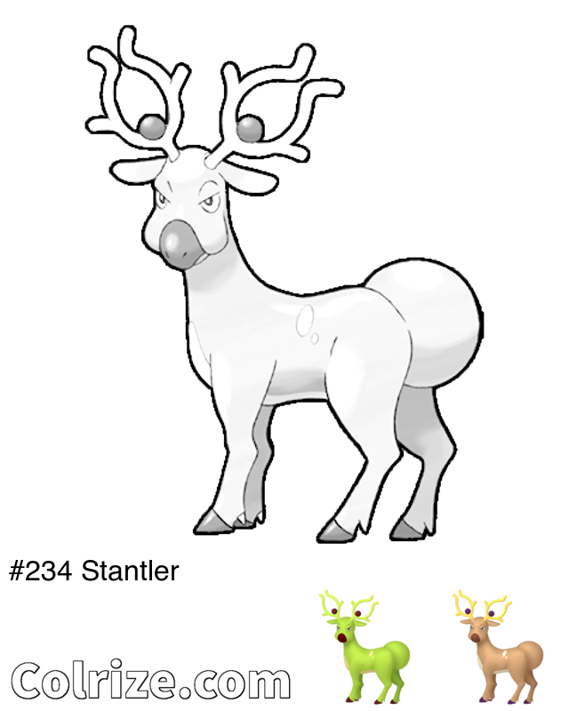 Stantler pokemon coloring page with color references! Also has Shiny Stantler and evolution chain coloring pages