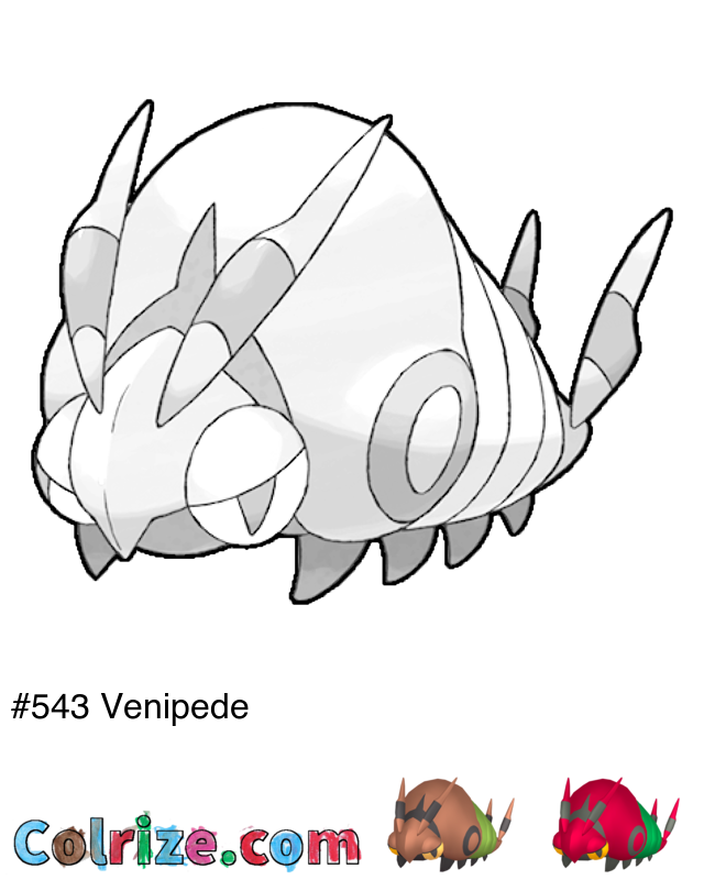 Venipede pokemon coloring page with color references! Also has Shiny Venipede and evolution chain coloring pages